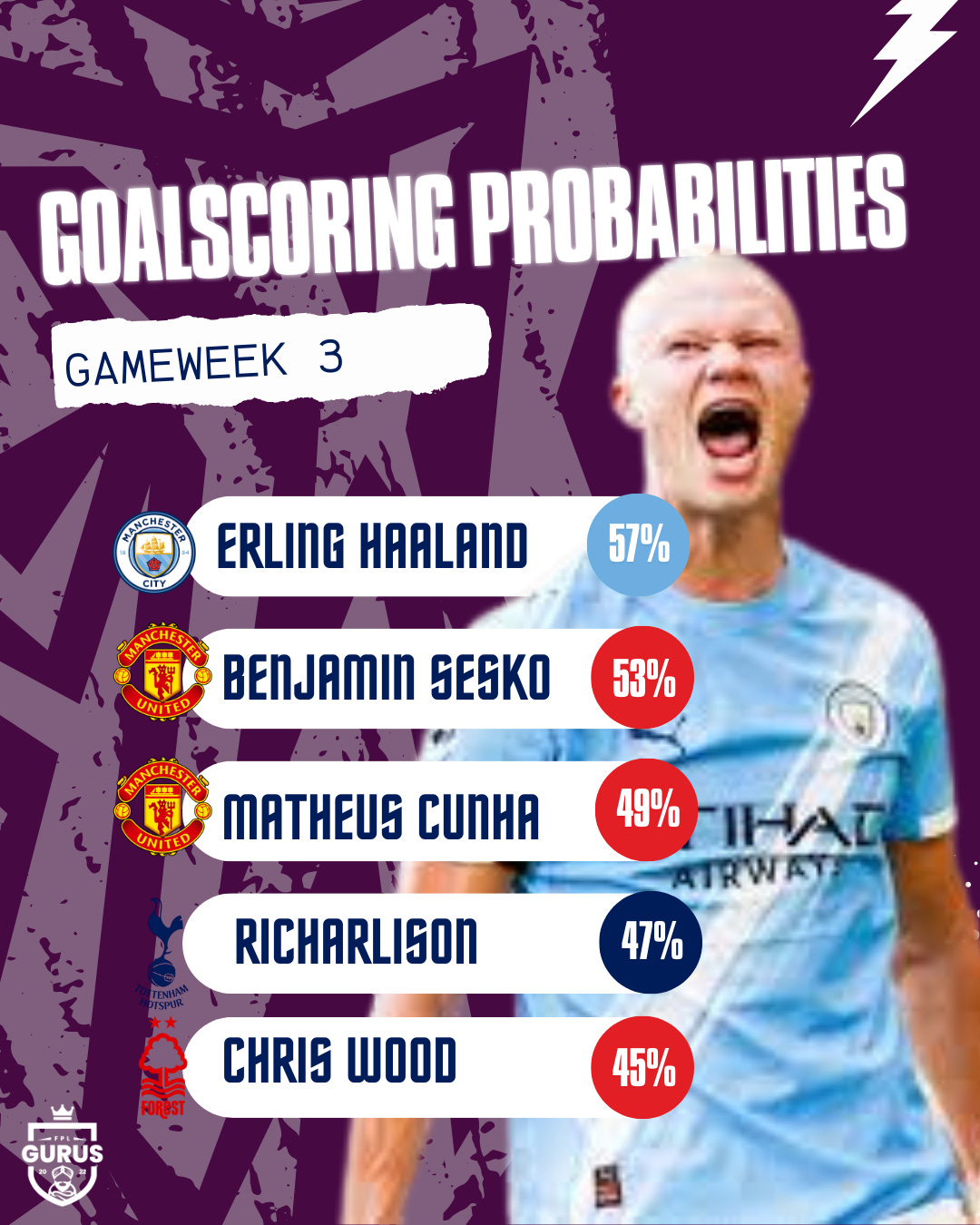 After a few weeks of Liverpool dominating the goalscoring charts, it has taken a turn this week. Haaland remains the top pick for this week, and several of the new Man United signings feature in the top five.