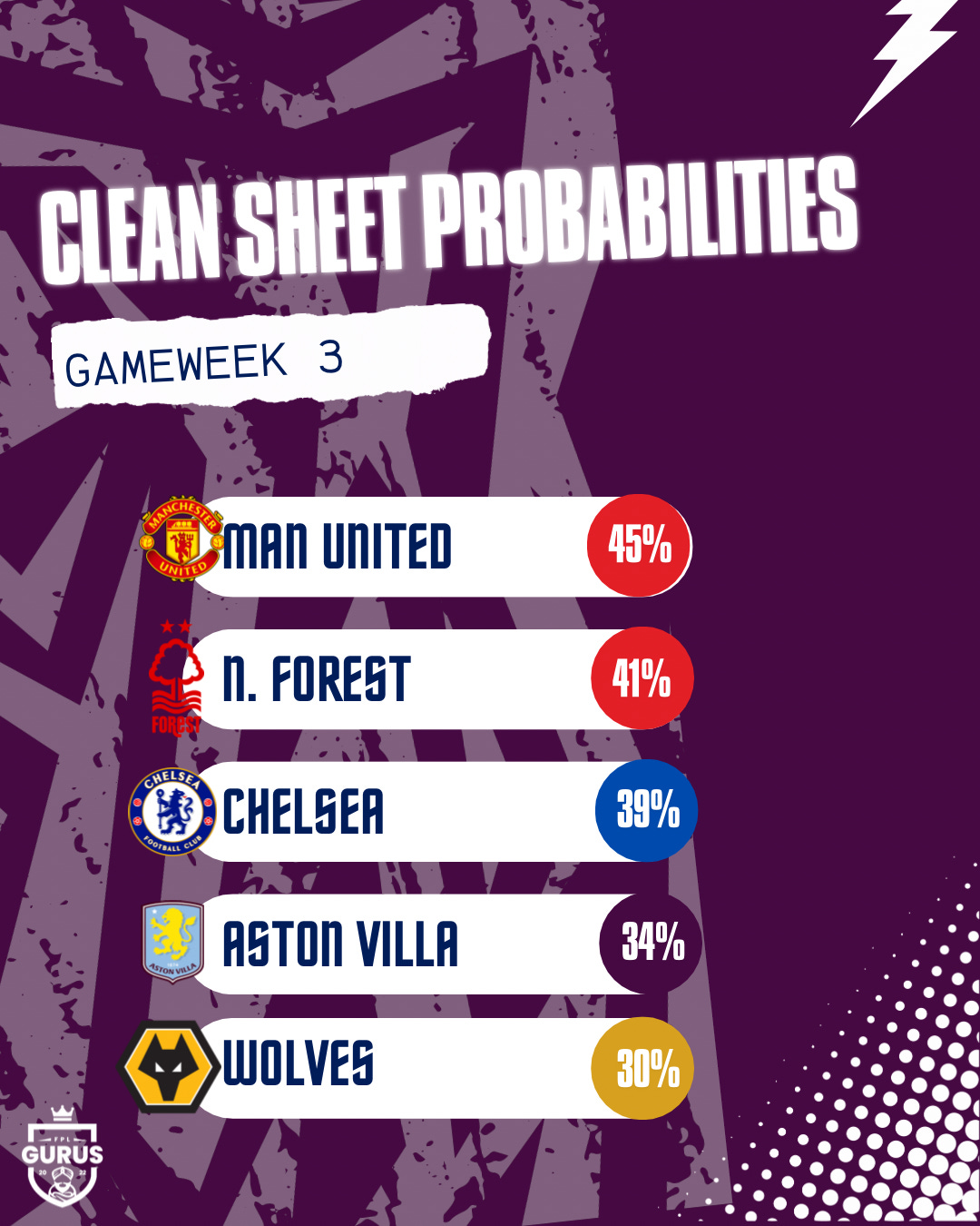 Man United sit top of the clean sheet predictions according to Rotowire.