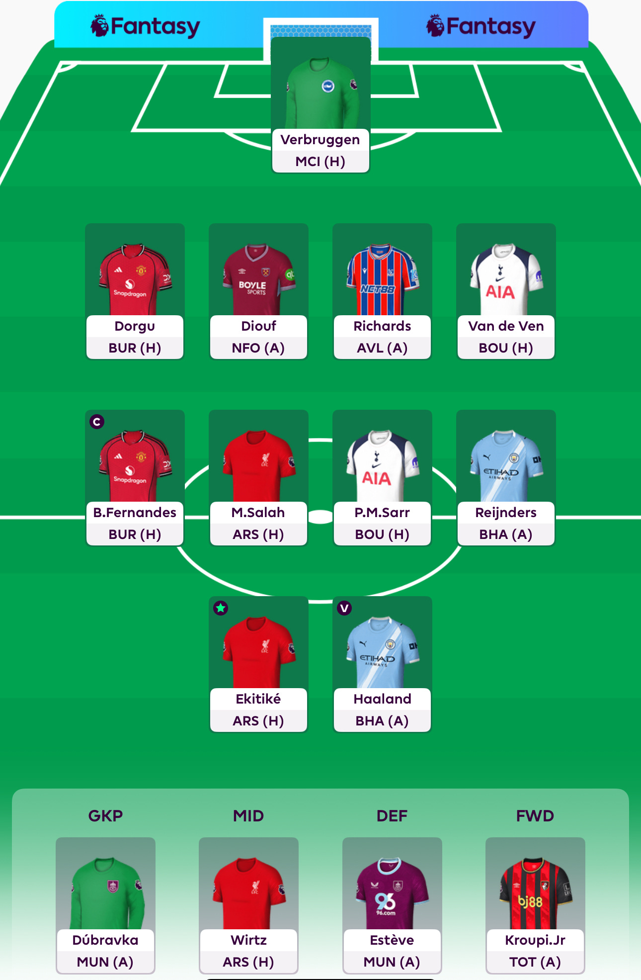 I have taken the big decision to bench Wirtz with a lot of home fixtures in the team. I am still backing Brumno as captain, but I know it could well come back to bite me.