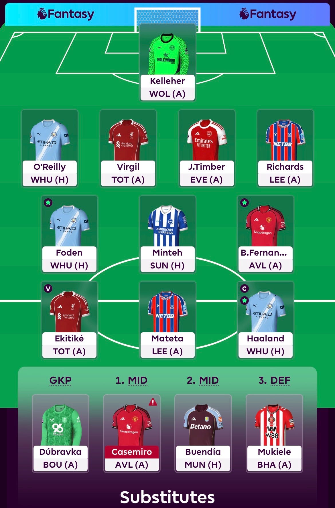 Morgan Rogers and his 15 points were sat on my bench as first sub, while Hugo Ekitike and his 13 points nearly made their way into my team, instead of Watkins’ 5.