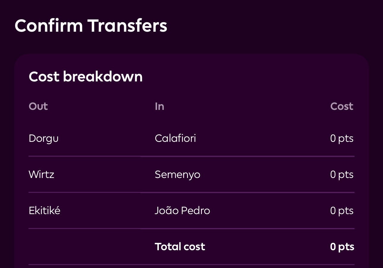 I am making my first transfers of the season, and I am making three in one go. The Liverpool boys are making a move out, and the extra funds have allowed me to add Calafiori as a premium defender option.